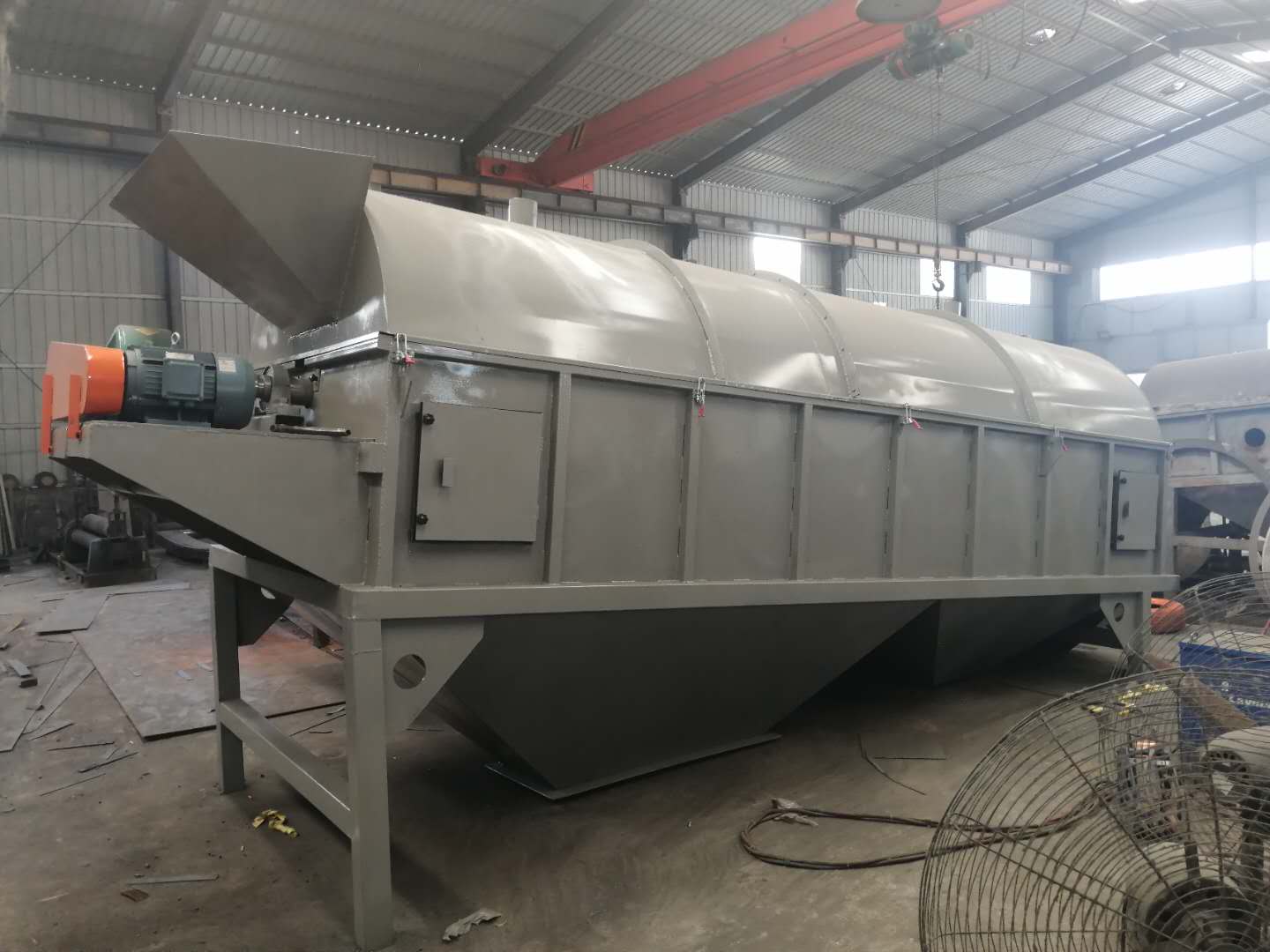 11、滾筒篩分機(jī)出廠后,如超過(guò)6個(gè)月才安裝,則安裝前必須將大軸的軸承拆下清洗,注入新潤(rùn)滑脂。